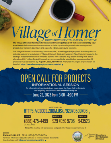 HOMER, N.Y. (WHCU) – Officials in Homer are asking for project proposals for its downtown revitalization initiative.